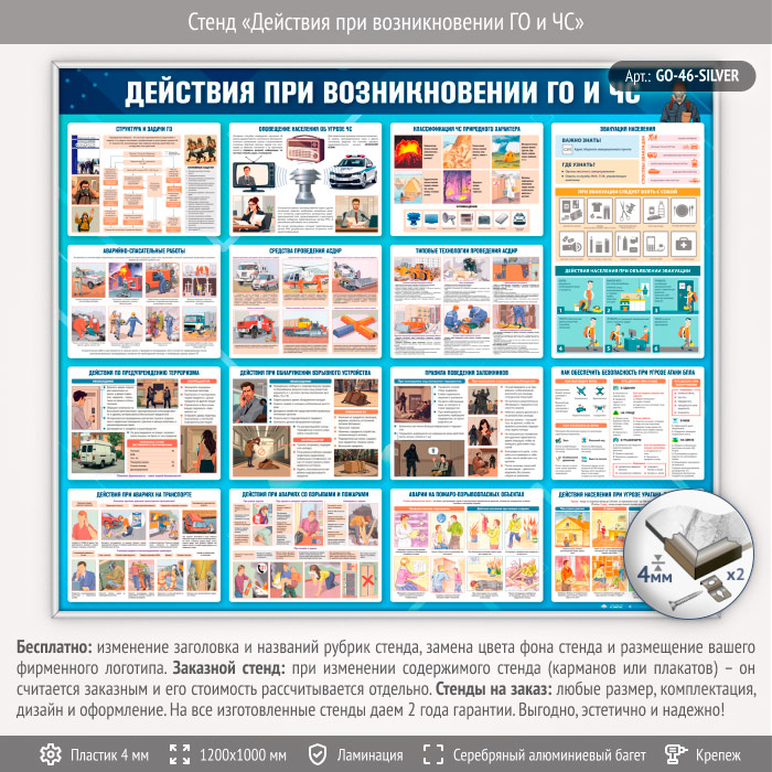 Стенд «Действия при возникновении ГО и ЧС» (GO-46-SILVER) в Альметьевске купить