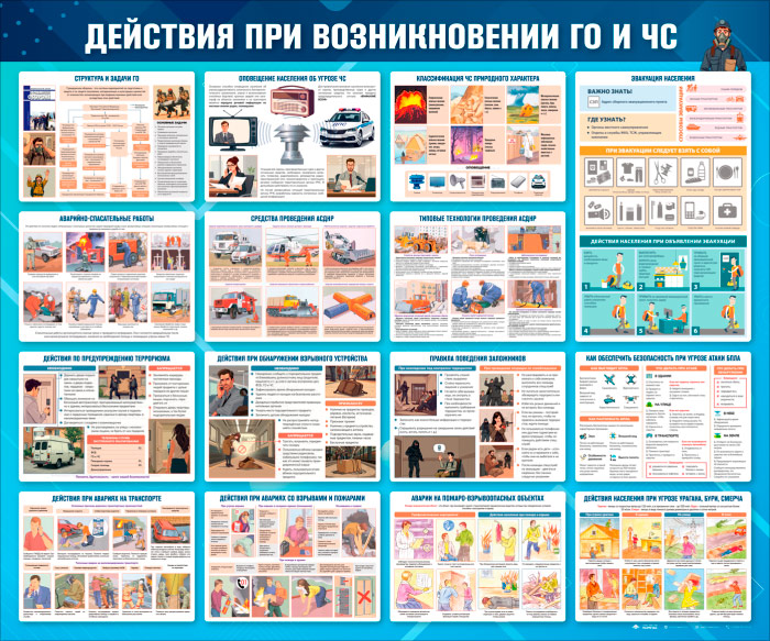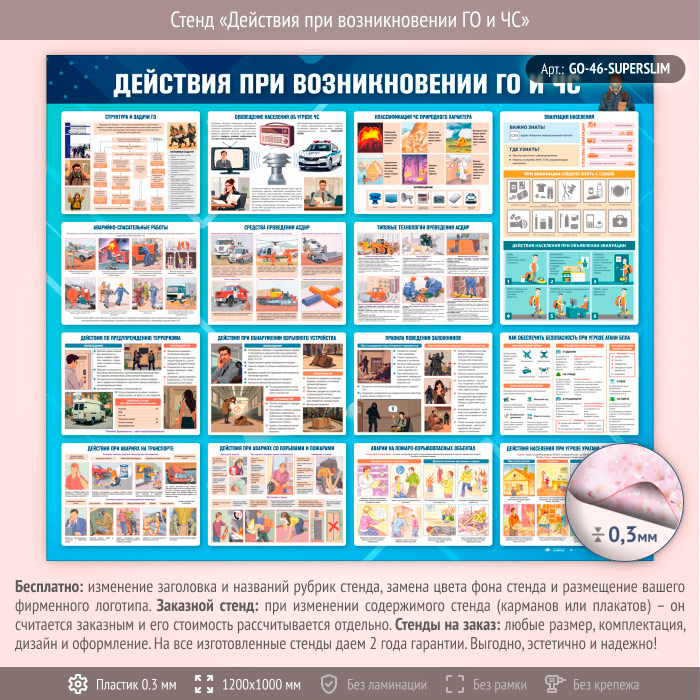 Стенд «Действия при возникновении ГО и ЧС» (GO-46-SUPERSLIM) в Альметьевске купить