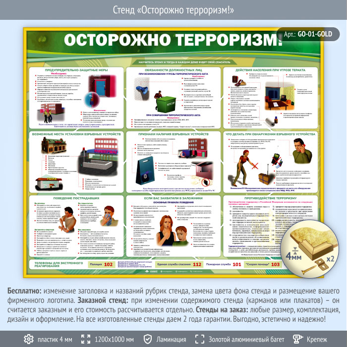 Стенд «Осторожно терроризм!» (GO-01-GOLD) в Альметьевске купить