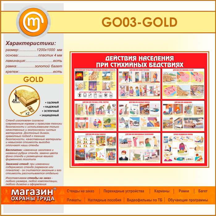 Стенд «Действия населения при стихийных бедствиях» (GO-03-GOLD) в Альметьевске купить