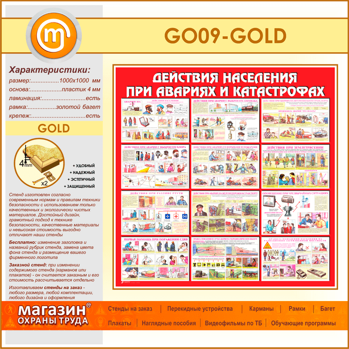 Стенд «Действия населения при авариях и катастрофах» (GO-09-GOLD) в Альметьевске купить