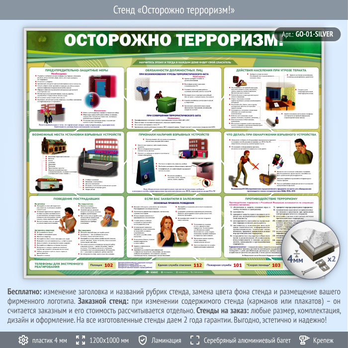 Стенд «Осторожно терроризм!» (GO-01-SILVER) в Альметьевске купить
