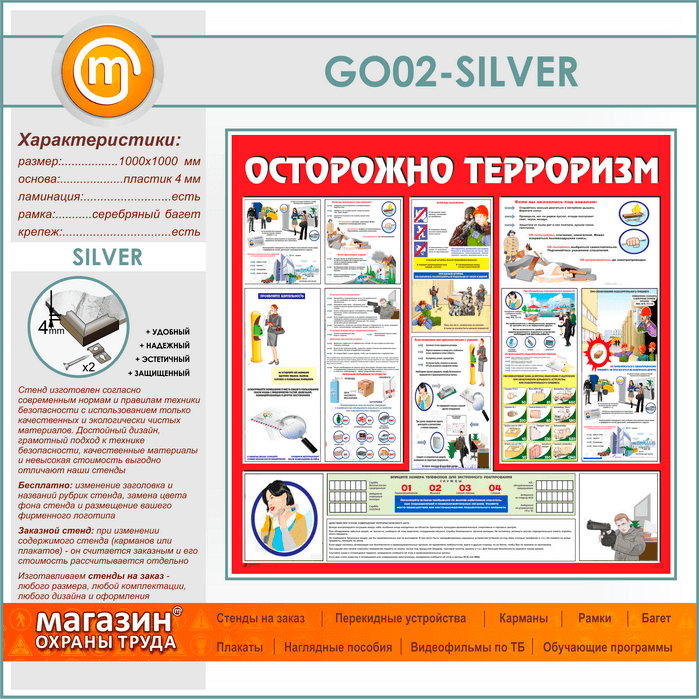 Стенд «Осторожно терроризм!» (GO-02-SILVER) в Альметьевске купить