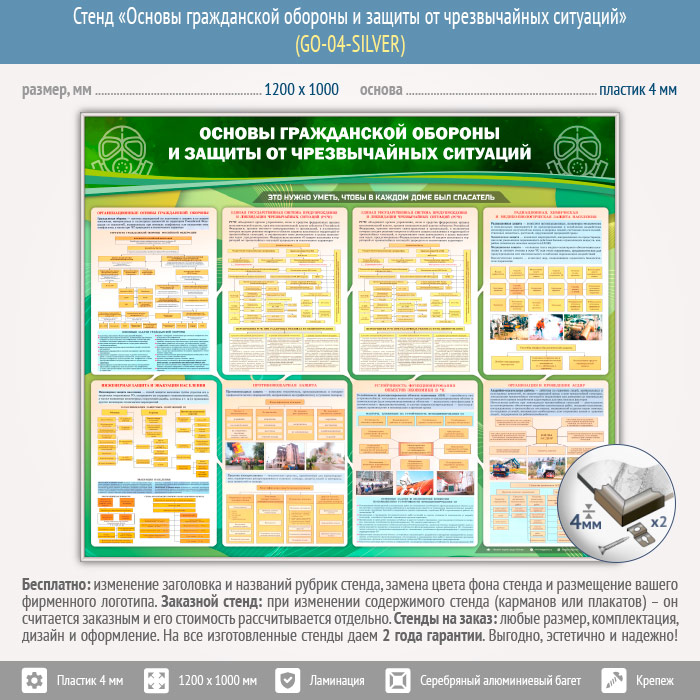 Стенд «Основы гражданской обороны и защиты от чрезвычайных ситуаций» (GO-04-SILVER) в Альметьевске купить