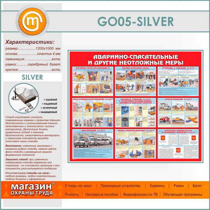 Стенд «Аварийно-спасательные и другие неотложные меры» (GO-05-SILVER) в Альметьевске купить