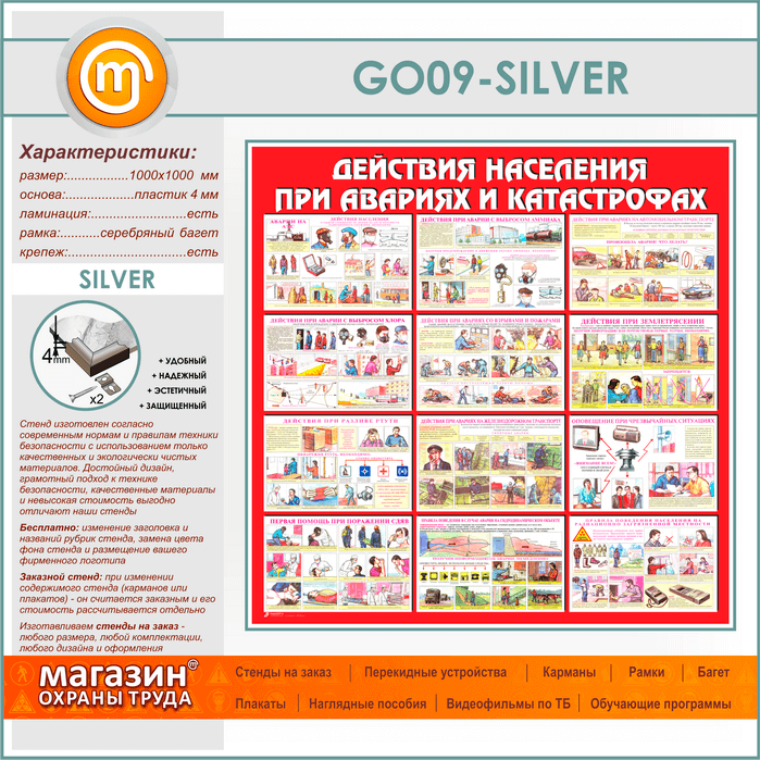 Стенд «Действия населения при авариях и катастрофах» (GO-09-SILVER) в Альметьевске купить