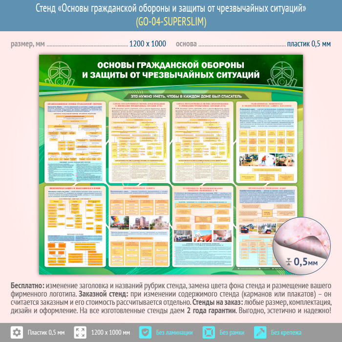 Стенд «Основы гражданской обороны и защиты от чрезвычайных ситуаций» (GO-04-SUPERSLIM) в Альметьевске купить