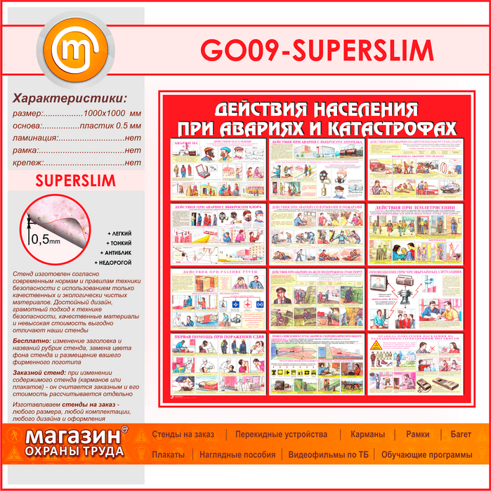 Стенд «Действия населения при авариях и катастрофах» (GO-09-SUPERSLIM) в Альметьевске купить