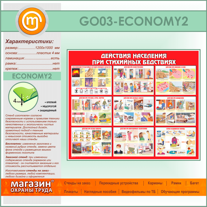 Стенд «Действия населения при стихийных бедствиях» (GO-03-ECONOMY2) в Альметьевске купить