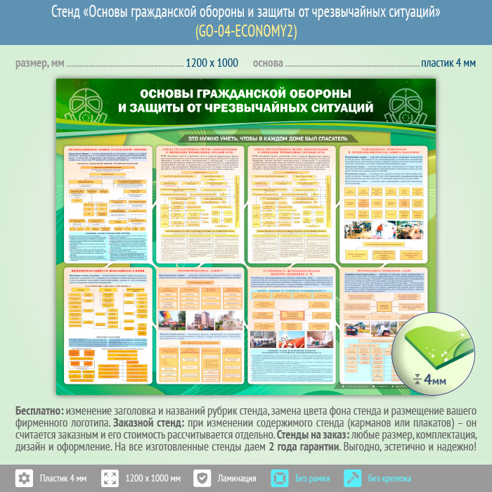Стенд «Основы гражданской обороны и защиты от чрезвычайных ситуаций» (GO-04-ECONOMY2) в Альметьевске купить