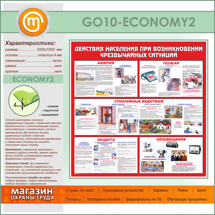 Стенд «Действия населения при возникновении чрезвычайных ситуаций» (GO-10-ECONOMY2) в Альметьевске купить