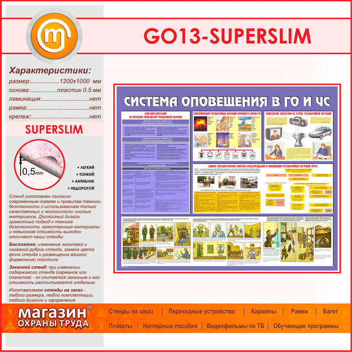 Стенд «Система оповещения в ГО и ЧС» (GO-13-SUPERSLIM) в Альметьевске купить