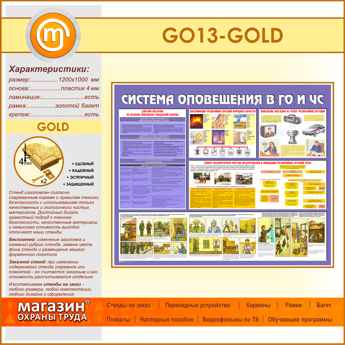 Стенд «Система оповещения в ГО и ЧС» (GO-13-GOLD) в Альметьевске купить