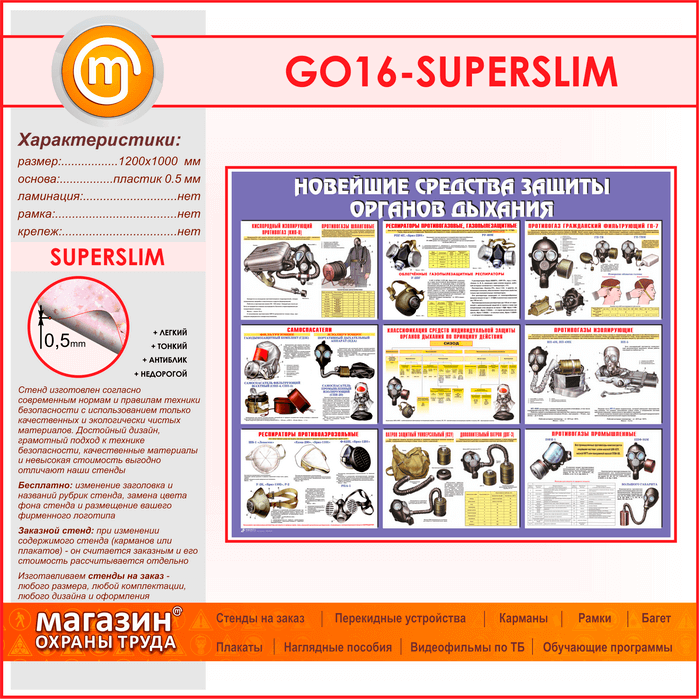 Стенд «Новейшие средства защиты органов дыхания» (GO-16-SUPERSLIM) в Альметьевске купить