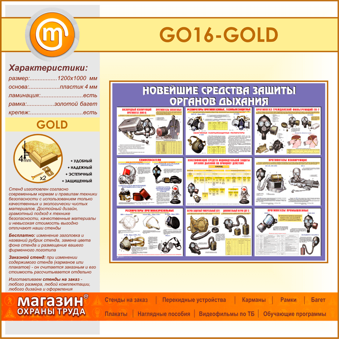 Стенд «Новейшие средства защиты органов дыхания» (GO-16-GOLD) в Альметьевске купить