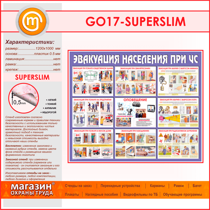 Стенд «Эвакуация населения при ЧС» (GO-17-SUPERSLIM) в Альметьевске купить
