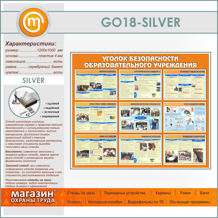 Стенд «Уголок безопасности образовательного учреждения» (GO-18-SILVER) в Альметьевске купить
