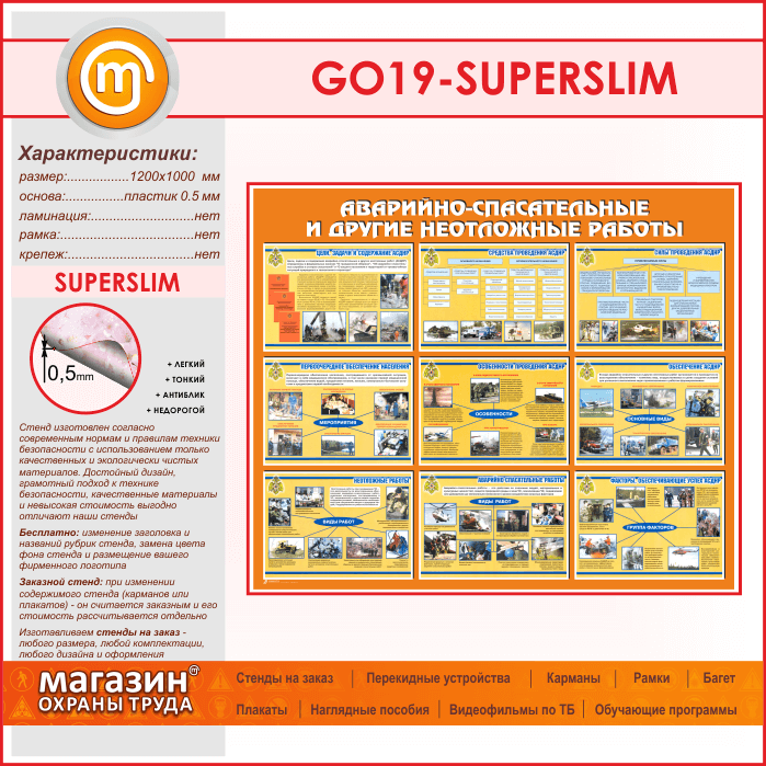 Стенд «Аварийно-спасательные и другие неотложные работы» (GO-19-SUPERSLIM) в Альметьевске купить