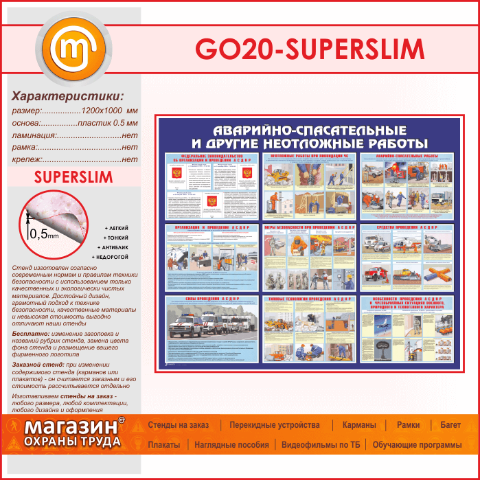 Стенд «Аварийно-спасательные и другие неотложные работы» (GO-20-SUPERSLIM) в Альметьевске купить