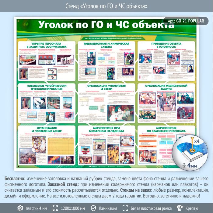 Стенд «Уголок по ГО и ЧС объекта» (GO-21-POPULAR) в Альметьевске купить