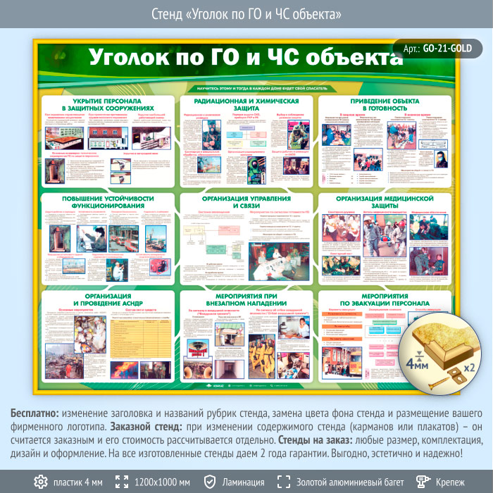 Стенд «Уголок по ГО и ЧС объекта» (GO-21-GOLD) в Альметьевске купить
