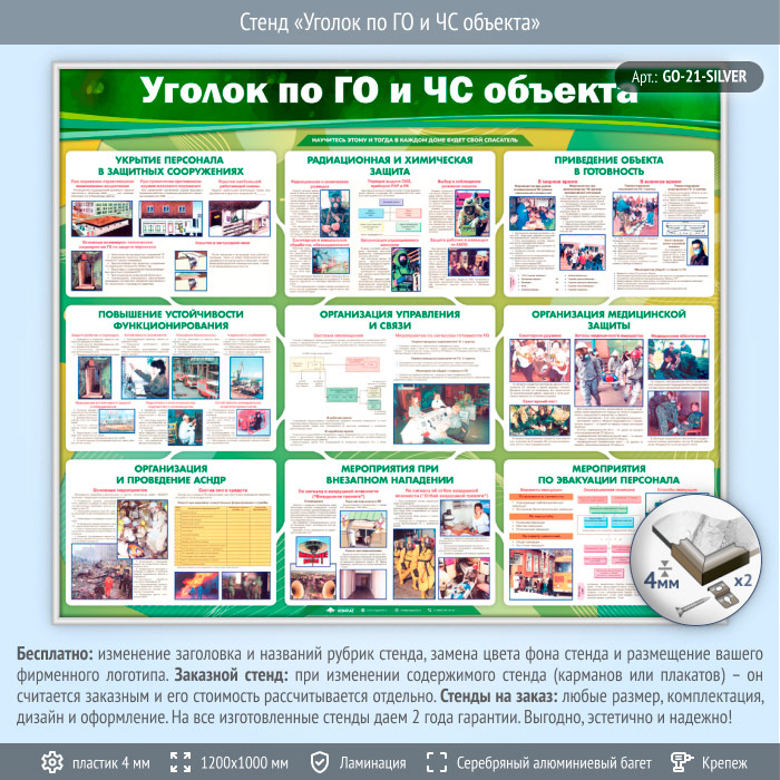 Стенд «Уголок по ГО и ЧС объекта» (GO-21-SILVER) в Альметьевске купить