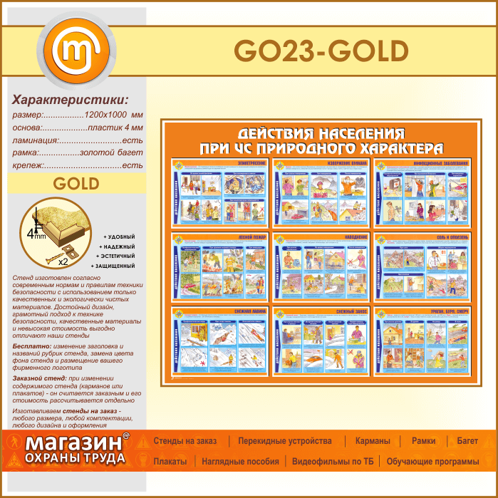 Стенд «Действия населения при ЧС природного характера» (GO-23-GOLD) в Альметьевске купить