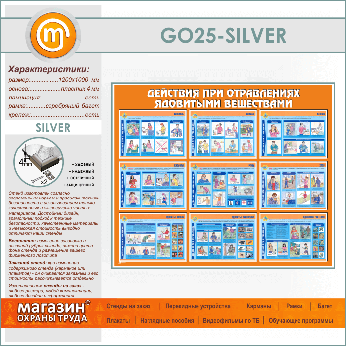 Стенд «Действия при отравлении ядовитыми веществами» (GO-25-SILVER) в Альметьевске купить