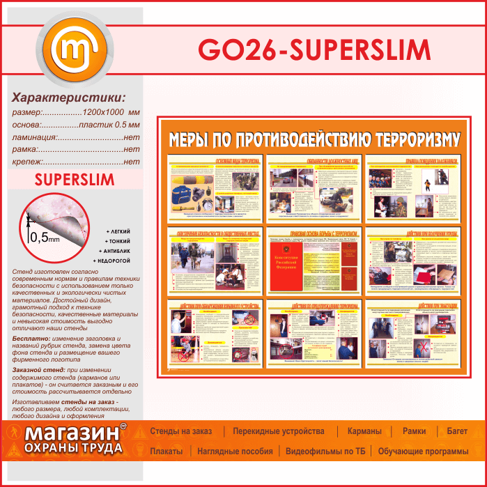 Стенд «Меры по противодействию терроризму» (GO-26-SUPERSLIM) в Альметьевске купить