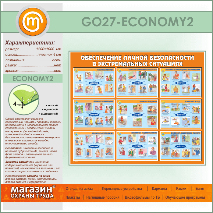 Стенд «Обеспечение личной безопасности в экстремальных ситуациях» (GO-27-ECONOMY2) в Альметьевске купить