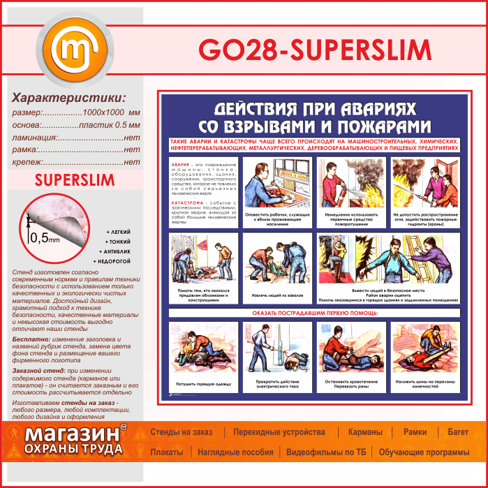 Стенд «Действия при авариях со взрывами и пожарами» (GO-28-SUPERSLIM) в Альметьевске купить
