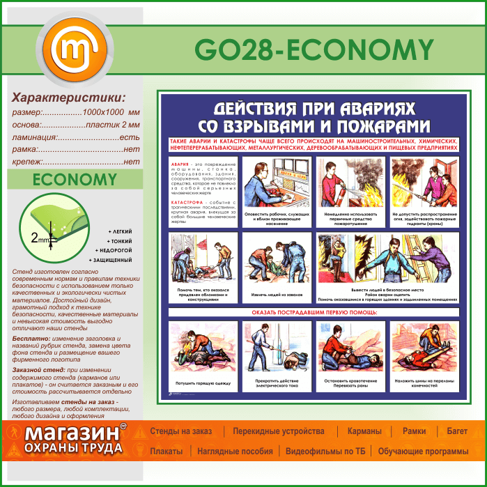 Стенд «Действия при авариях со взрывами и пожарами» (GO-28-ECONOMY) в Альметьевске купить