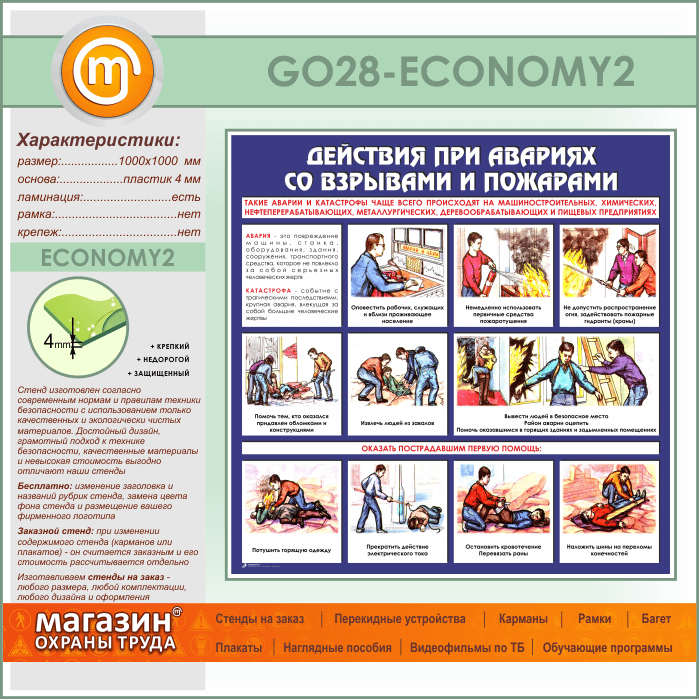 Стенд «Действия при авариях со взрывами и пожарами» (GO-28-ECONOMY2) в Альметьевске купить