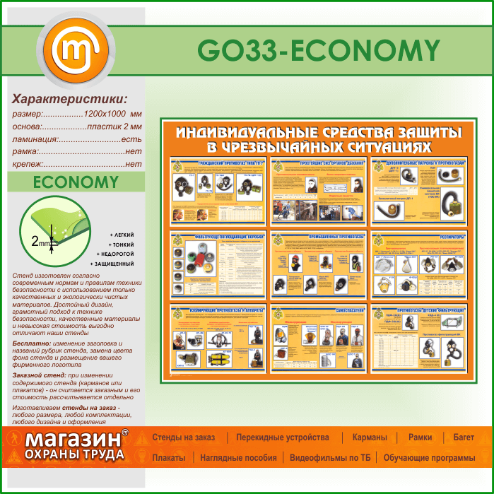 Стенд «Индивидуальные средства защиты в чрезвычайных ситуациях» (GO-33-ECONOMY) в Альметьевске купить