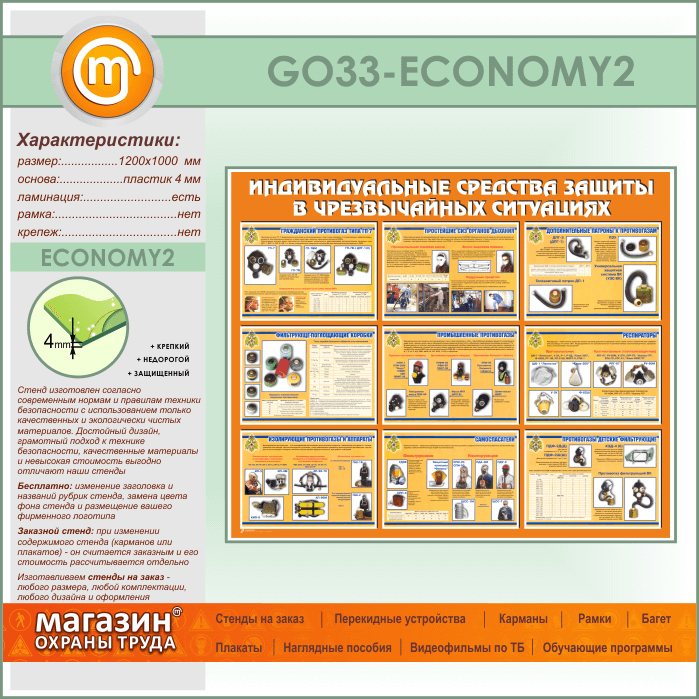 Стенд «Индивидуальные средства защиты в чрезвычайных ситуациях» (GO-33-ECONOMY2) в Альметьевске купить