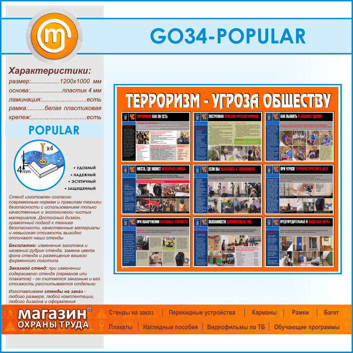 Стенд «Терроризм - угроза обществу» (GO-34-POPULAR) в Альметьевске купить