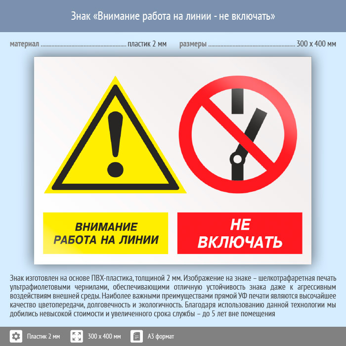 Знак «Внимание работа на линии - не включать», КЗ-16 (пластик, 400х300 мм) в Альметьевске купить