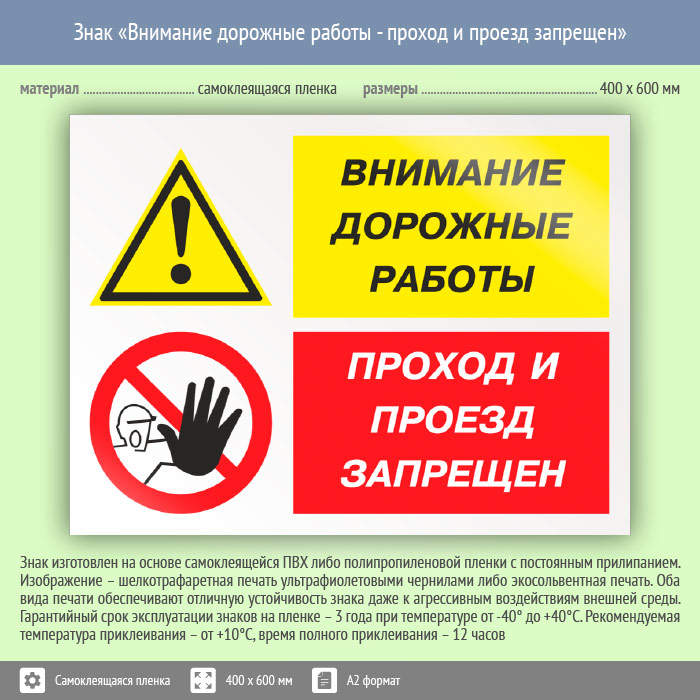 Знак «Внимание дорожные работы - проход и проезд запрещен», КЗ-14 (пленка, 600х400 мм) в Альметьевске купить