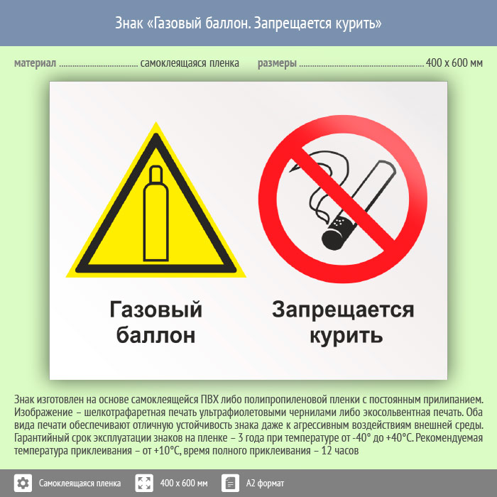 Знак «Газовый баллон. Запрещается курить», КЗ-18 (пленка, 600х400 мм) в Альметьевске купить