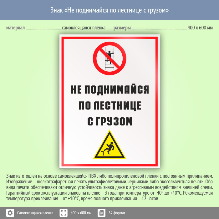 Знак «Не поднимайся по лестнице с грузом», КЗ-28 (пленка, 400х600 мм) в Альметьевске купить