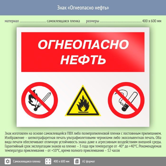 Знак «Огнеопасно нефть», КЗ-31 (пленка, 600х400 мм) в Альметьевске купить