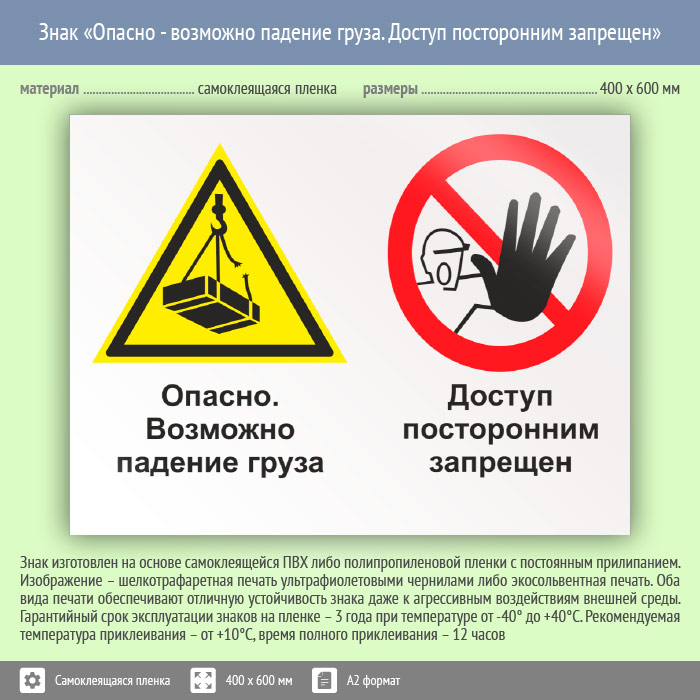 Знак «Опасно - возможно падение груза. Доступ посторонним запрещен», КЗ-33 (пленка, 600х400 мм) в Альметьевске купить