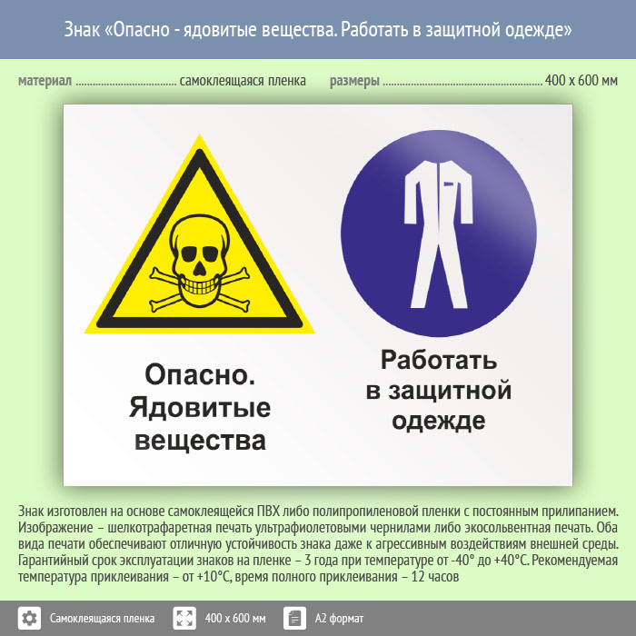 Знак «Опасно - ядовитые вещества. Работать в защитной одежде», КЗ-42 (пленка, 600х400 мм) в Альметьевске купить