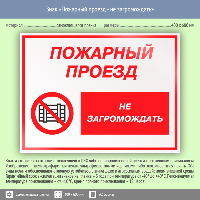 Знак «Пожарный проезд - не загромождать», КЗ-67 (пленка, 600х400 мм) в Альметьевске купить