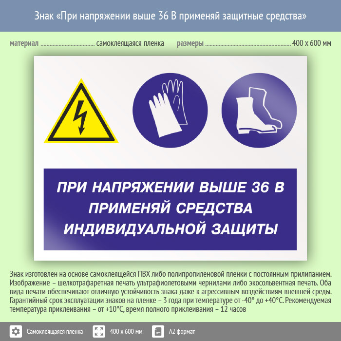Знак «При напряжении выше 36 В применяй защитные средства», КЗ-71 (пленка, 600х400 мм) в Альметьевске купить