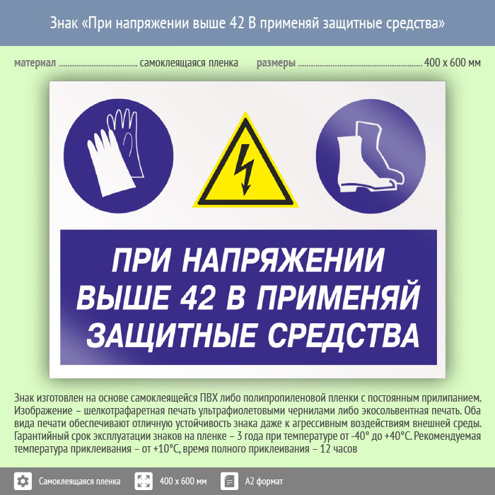 Знак «При напряжении выше 42 В применяй защитные средства», КЗ-72 (пленка, 600х400 мм) в Альметьевске купить