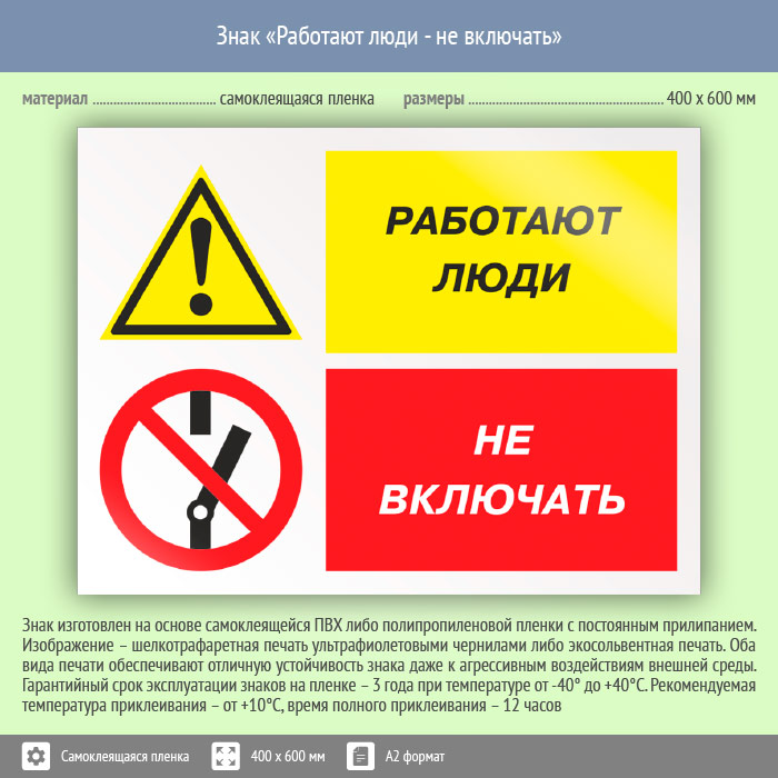 Знак «Работают люди - не включать», КЗ-83 (пленка, 600х400 мм) в Альметьевске купить