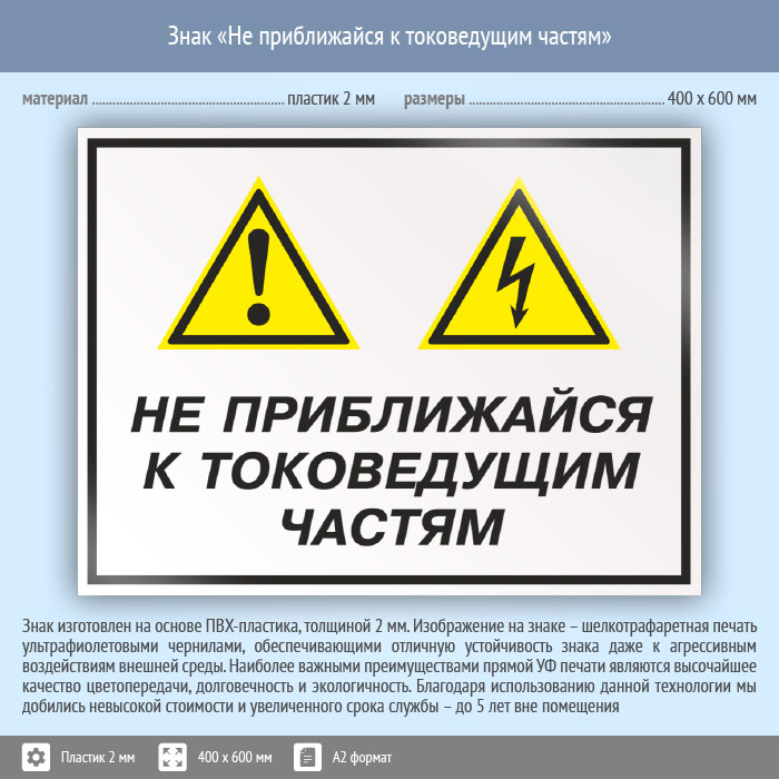Знак «Не приближайся к токоведущим частям», КЗ-29 (пластик, 600х400 мм) в Альметьевске купить