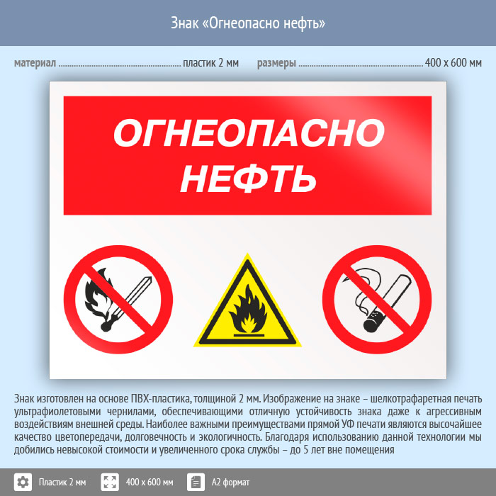 Знак «Огнеопасно нефть», КЗ-31 (пластик, 600х400 мм) в Альметьевске купить