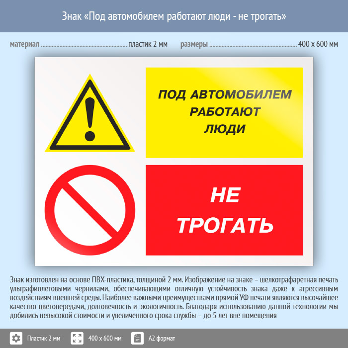 Знак «Под автомобилем работают люди - не трогать», КЗ-66 (пластик, 600х400 мм) в Альметьевске купить
